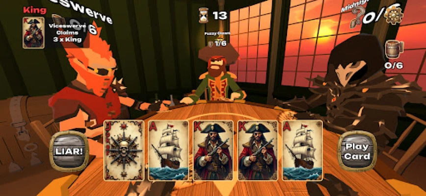 "Liar's Cards: Ship of Deceit" adalah game kartu seluler mendebarkan di mana strategi, tipuan, dan keberuntungan menentukan nasib Anda di kapal bajak laut terkutuk. Akali dan kalahkan lawan bajak laut Anda dalam petualangan berisiko tinggi ini.