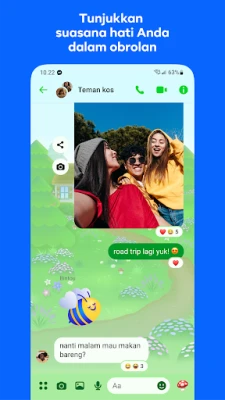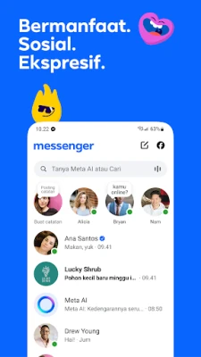 Hadapi tantangan sehari-hari dan kembangkan kreativitas Anda dengan kekuatan Meta AI. Asisten cerdas ini siap memberikan jawaban instan atas pertanyaan Anda, menawarkan saran, bahkan membantu menyelesaikan pekerjaan rumah dan banyak lagi. Manfaatkan Meta AI sebagai rekan kreatif Anda untuk menghasilkan, mengedit, hingga menganimasikan gambar dengan imajinasi tanpa batas. Selain itu, Messenger memperkaya cara Anda berekspresi: bagikan suasana hati Anda dengan stiker animasi, GIF, dan tanggapan yang ekspresif, atau sesuaikan tampilan obrolan dengan beragam tema yang terus diperbarui. Abadikan dan bagikan potongan-potongan momen harian Anda melalui Cerita yang akan menghilang setelah 24 jam, atau berikan Catatan singkat berisi opini yang juga bersifat sementara, menjaga Anda tetap terhubung dengan cara yang dinamis dan visual. Harap dicatat bahwa Meta AI saat ini tersedia dalam bahasa dan di negara tertentu, dengan rencana ekspansi ke lebih banyak wilayah di masa mendatang.
