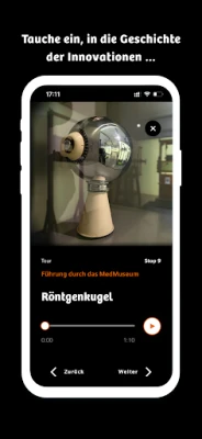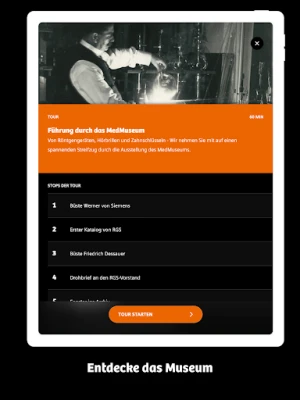 Fleksibilitas adalah inti dari pengalaman MedMuseum App. Baik Anda sedang menjelajahi koridor museum secara langsung atau ingin memperkaya pengetahuan sejarah medtech dari kenyamanan sofa di rumah, MedMuseum App siap menemani. Anda memiliki kebebasan untuk memilih: ikuti tur terpandu yang sistematis melintasi seluruh pameran, atau selami area museum dan eksponat tertentu sesuai minat Anda. Untuk pengalaman audio yang optimal, kami sarankan membawa perangkat pendengar pribadi Anda. Aplikasi ini tersedia dalam beragam bahasa: Jerman, Inggris, Spanyol, Portugis, dan Mandarin.